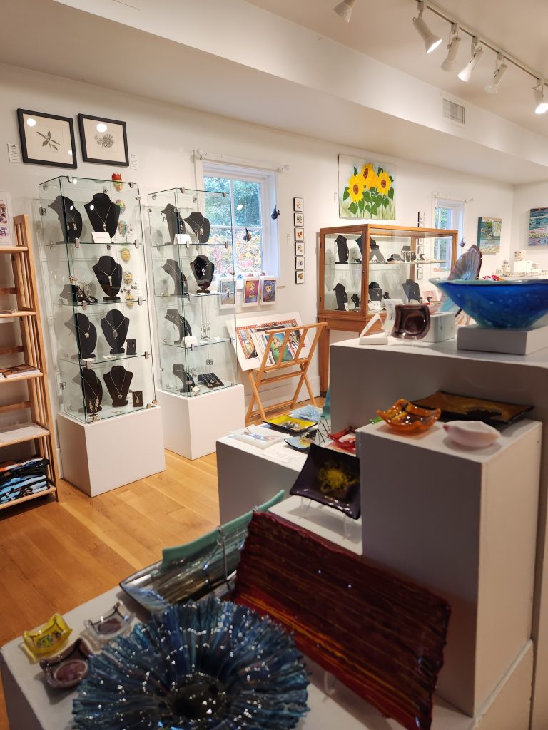 The Bush Barn Art Center Gift Gallery features handcrafted jewelry, glassware, fiber art, ceramics, metalwork and sculpture as well as paintings, drawings and original prints by more than 50 of regional artists and craftspeople.
